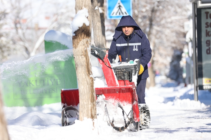 Yoğun kar yağışı sonrası harekete geçen Erzurum Büyükşehir Belediyesi’ne bağlı karla mücadele ekipleriyoğun mesaiye başladı. Kırsal alan, ana ve ara arterler, cadde ve sokaklarda karla mücadele çalışması yapan ekipler, araç ve yaya trafiğinin bulunduğu bölgeleri temizleme çalışmalarını sürdürüyor.