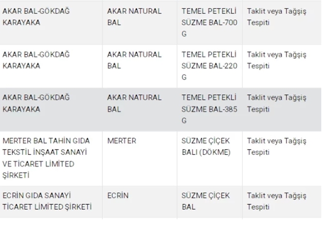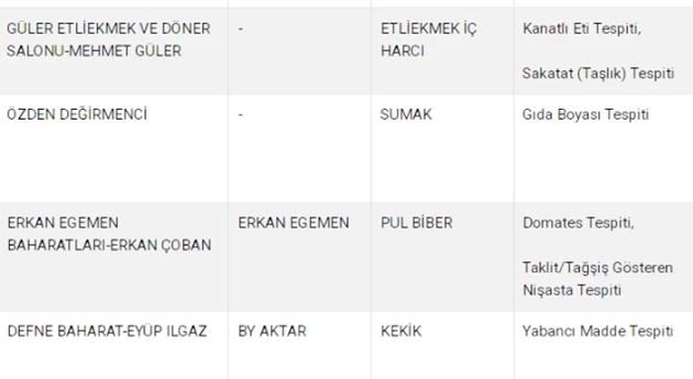 Tarım Ve Orman Bakanlığı'nın ifşa ettiği gıda markaları listesinde bu kez her türden ürün var. Sucuktan, köfteye, kebaptan yoğurda kadar bir çok ürün sakıncalı çıktı. Listenin büyük bir kısmını ise sahte bal markaları kapladı.